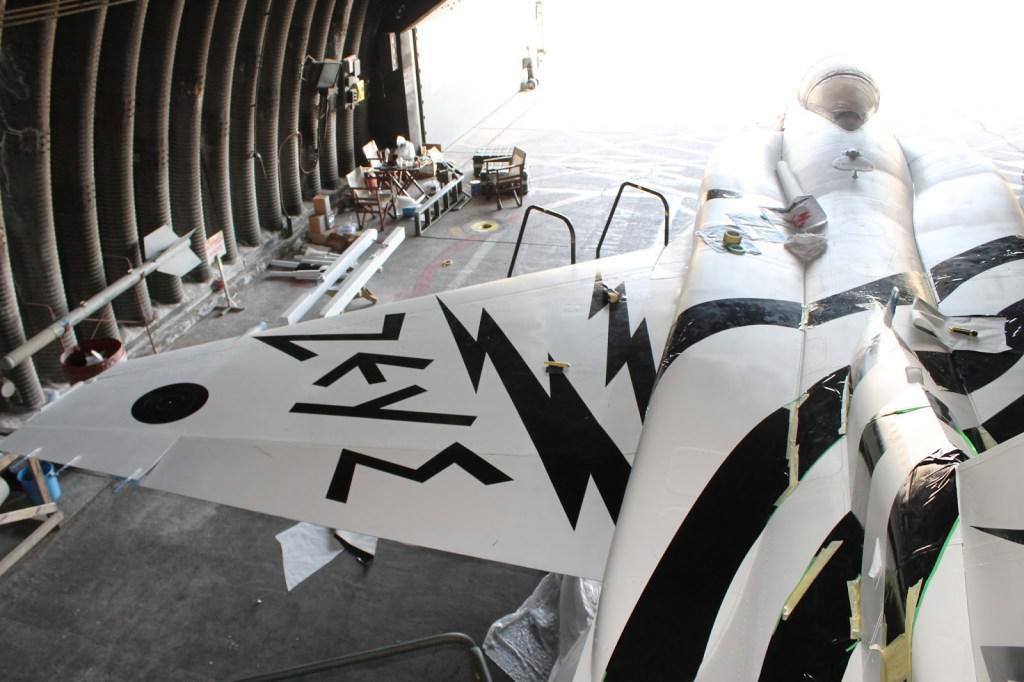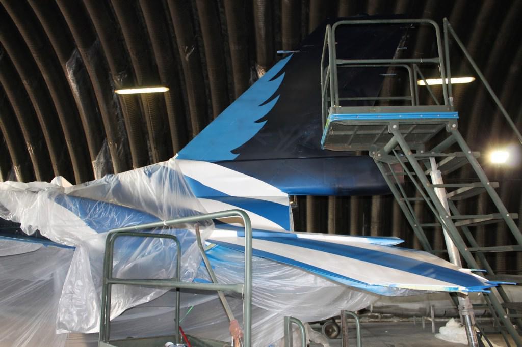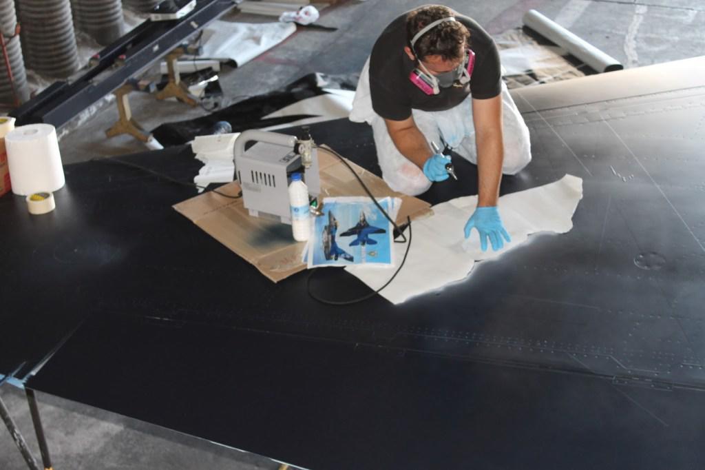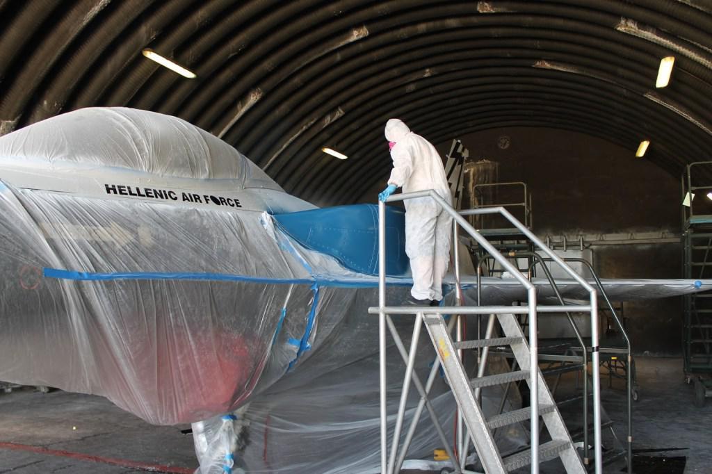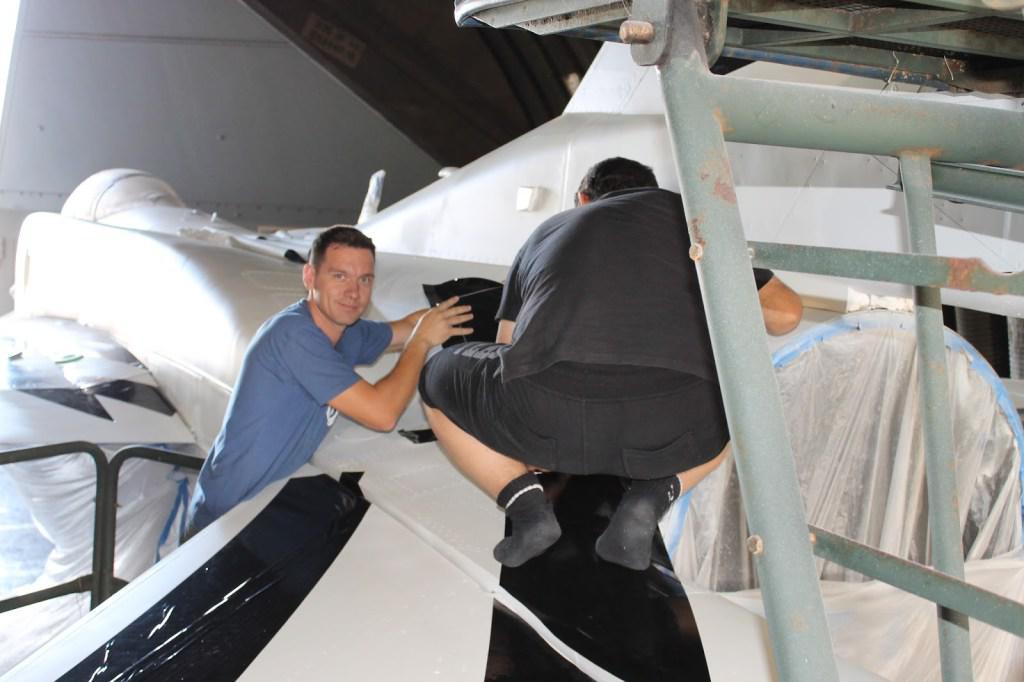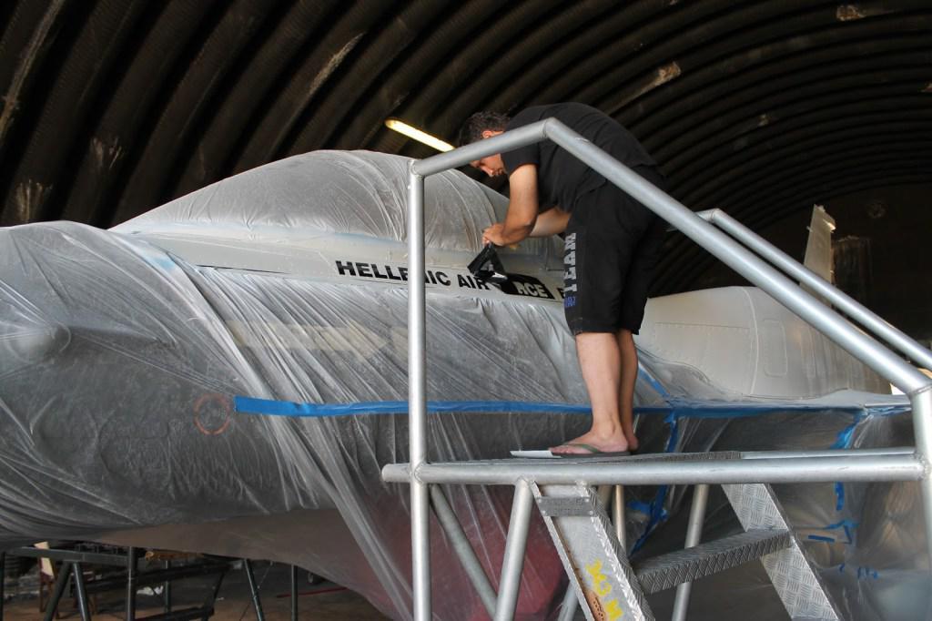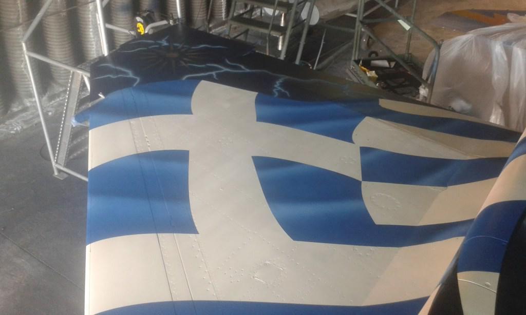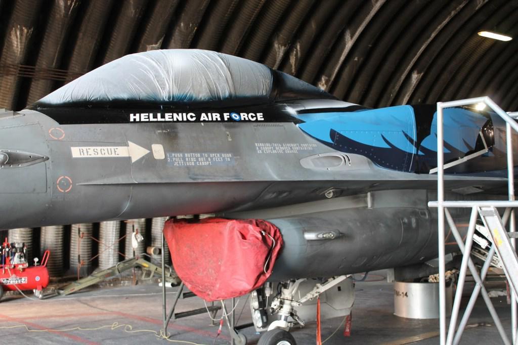 Η ομάδα «Ζευς» για πρώτη φορά δίνει στη δημοσιότητα εικόνες από το παρασκήνιο του πώς βάφτηκε στα ελληνικά χρώματα το F-16 της, με ένα σχέδιο το οποίο βραβεύτηκε τον περασμένο Ιούλιο στο Royal International Air Tattoo.